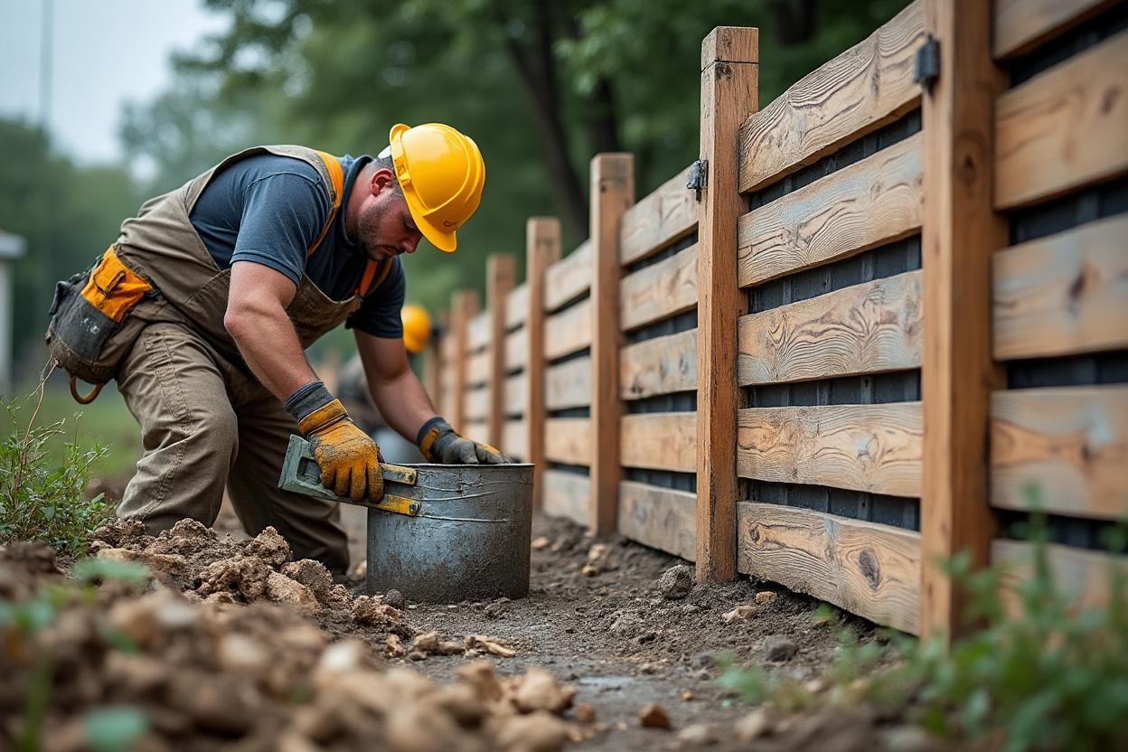 Les poteaux sont le point d’ancrage ; il faut les sceller solidement dans le sol avec du béton. Un béton bien dosé (de l’ordre de 300 à 350 kg/m³) et un temps de séchage respecté garantissent une base rigide.